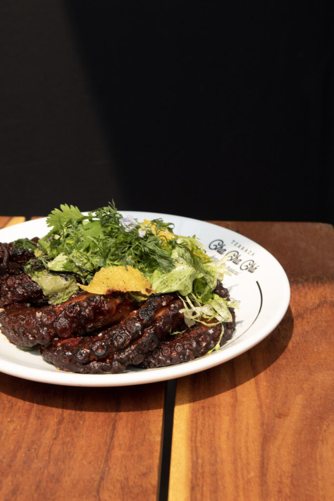 Para el plato fuerte las opciones serán Pulpo Arrebatado: Pulpo a las Brasas, Adobo de Chiles, acompañado de Ensalada Verde, supremas de cítricos y Mayonesa de Pepinillos o bien un Pescado Cha Cha Chá: Pesca del día, Mojo de Limón, Hinojo, Ensalada de hojas verdes, Mayones de Chiles Toreados y Salsa de habanero.