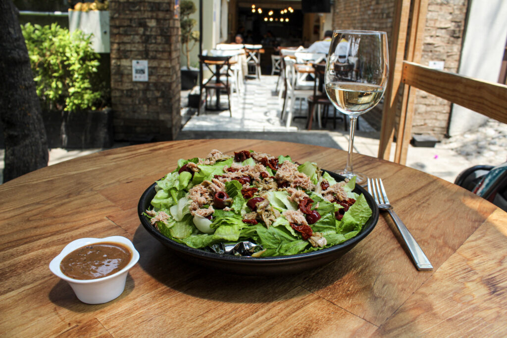 - Ensaladas frescas: Las ensaladas funcionan como el complemento ideal del menú, preparadas al momento con vegetales frescos y aderezos bien equilibrados. Son opciones ligeras pero llenas de sabor, pensadas para acompañar pastas o pizzas sin perder protagonismo dentro de la experiencia gastronómica.