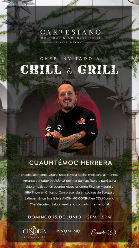 El chef Cuauhtémoc Herrera llevará a Puebla todo el sabor y técnica del restaurante Anónimo que se ubica en la Ciudad de México con diversos cortes cocinados al carbón: Lechón, Cabrito, Picaña, Short rib de res, Mollejas, Chorizo argentino, Chistorra, Piña asada y Vegetales a la parrilla. “Será una celebración llena de sabores e historias, estoy feliz de visitar Puebla y compartir las técnicas de cocina con aromas que atraparán los paladares de los papás”.