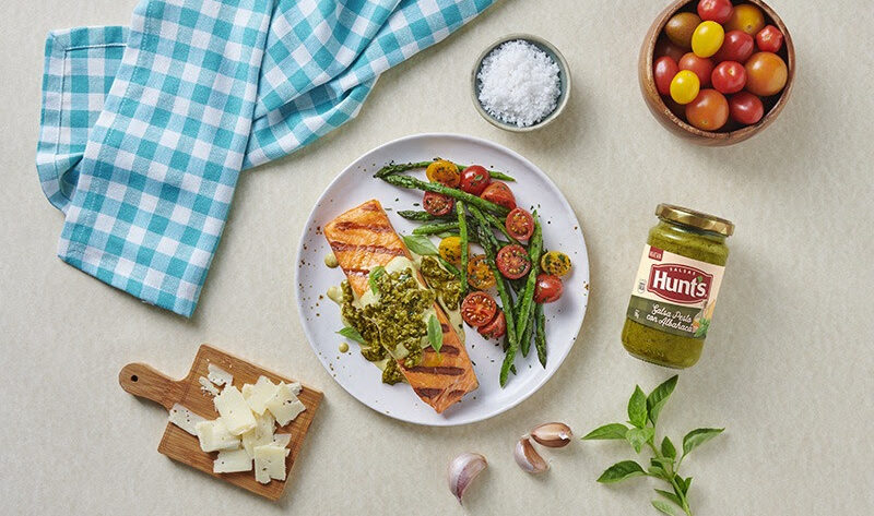 ¿Llegó la cuaresma y no se te ocurre nada nuevo qué preparar? Durante esta temporada, Hunt’s será tu mejor aliado para experimentar nuevas y fáciles recetas, dándole ese toque especial y delicioso que todos buscamos en nuestros platillos. Atrévete a preparar un; “Filete de Salmón con Pesto y Jitomates Cherry Rostizados», un platillo que sorprenderá a toda tu familia y amigos, por el exquisito sabor de la nueva Salsa Pesto de Hunt’s, la cual hará que el sabor de tus recetas no sean las mismas, sino mejores. ¡Suena rico!