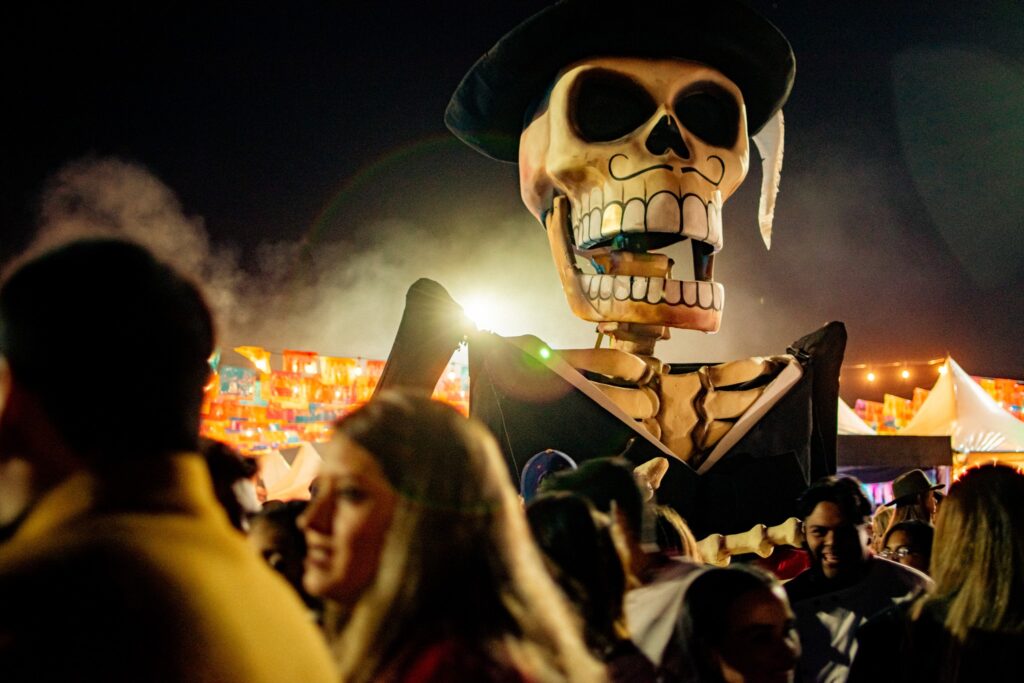 temática de catrinas y alebrijes gigantes adicionalmente un espectáculo circense que