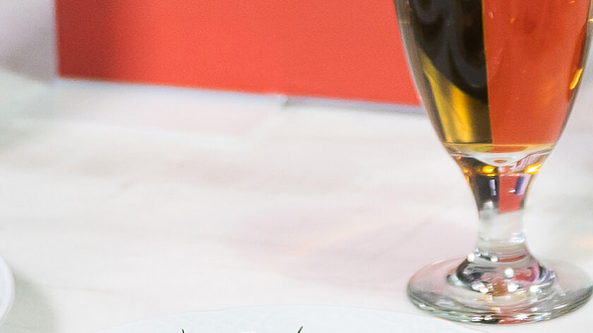 4. Armar el taco colocando primero la crema de espinaca tibia y luego la carne dorada y rebanada encima de la tortilla. Decorar con los romeritos y los chips de ajo crocantes. Para el Chef Oliva, un taco es más rico con una buena cerveza. Y, qué mejor maridaje que una Pilsner Checa de cuerpo suave y sabor ligeramente amargo.