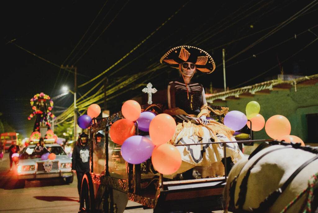 culturales como: el desfile de mojigangas de calaveras, concursos de