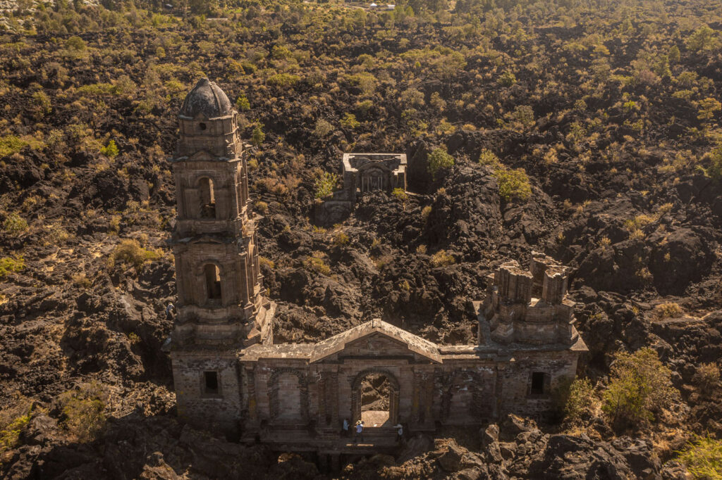 tierra y arrasó con el pueblo de San Juan Parangaricutiro. Sin embargo, entre los ríos de lava y
