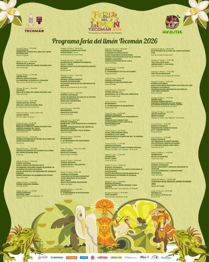 y sabor, donde el campo, la cultura y la hospitalidad colimense son los anfitriones. Este fin de semana largo, el plan perfecto tiene aroma a cítrico, música y mesas llenas de delicias locales. La invitación está hecha: ven a disfrutar la Feria del Limón y descubre por qué Tecomán es tierra de grandes frutos y grandes fiestas.