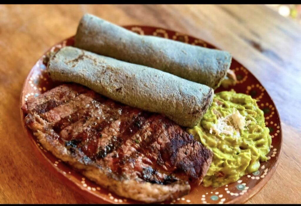 A la entrada del pueblo, junto al arco de bienvenida, El Sazón de la Abuela Tina se ha convertido en una referencia para quienes buscan cocina casera y tradicional. Bajo una gran palapa, el espacio abierto te recibe con aroma a leña y una decoración rústica de mesas de madera. Entre sus platillos, servidos en loza de barro, se recomiendan la sopa de ombligo, los pankekis, la pepena y los burros prietos.