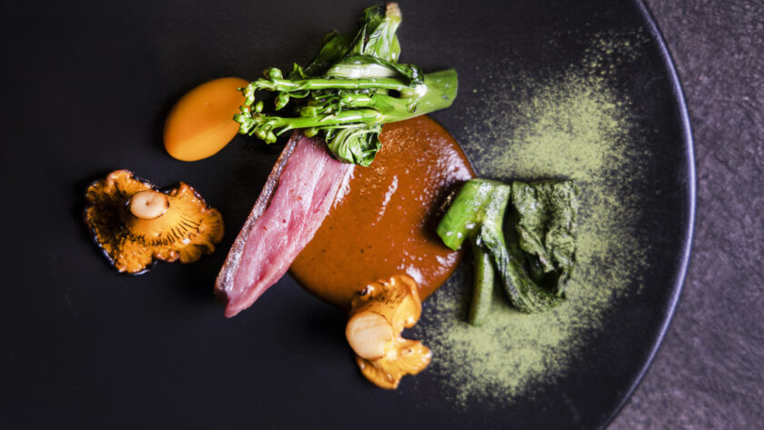 El recorrido de este menú de seis tiempos inicia con un Taco de charal, seguido de Trucha salmonada con maracuyá, manzano, coco, ikura y carambolo en preserva. Continúa con un Salpicón de venado con emulsión de hierbas y wasabi, y un Uchepo de Uruapan con nata, camarón de profundidad, crema de elote y vainilla. El plato fuerte presenta Pato en mole sin madre con ciruela jocote, para cerrar con un Cremoso de requesón, calabaza en dulce y dulces de temporada.