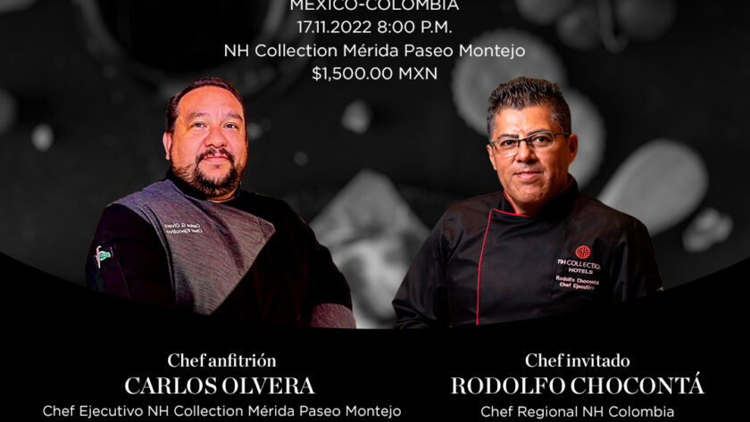 NH Hotel Group anuncia la cena maridaje a seis tiempos y cuatro manos que se realizará el 17 de noviembre a las 8 pm en NH Collection Mérida Paseo Montejo con los Chefs Carlos Olvera, Chef Ejecutivo del prestigioso hotel NH Collection Mérida y el chef invitado Rodolfo Chocontá, Chef regional NH Collection Colombia.