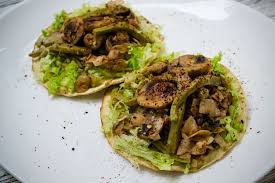 2. Preparar las tostadas colocando una base de aguacate y encima el guisado de champiñones.
