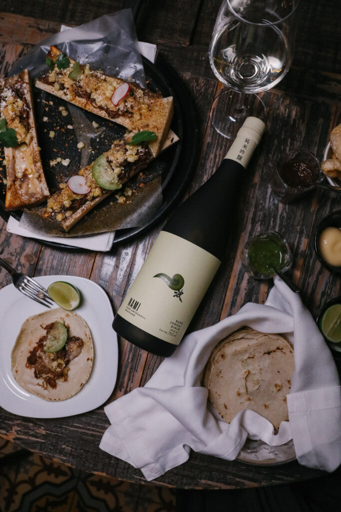 - NAMI Junmai (55% de pulido): perfecto con un taco al pastor, donde la acidez corta la grasa y resalta el adobo.