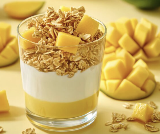 preparación fresca, cremosa y con buen balance entre sabor y nutrición. - Parfait de mango, yoghurt y nuez: Una receta rápida que puede prepararse en minutos