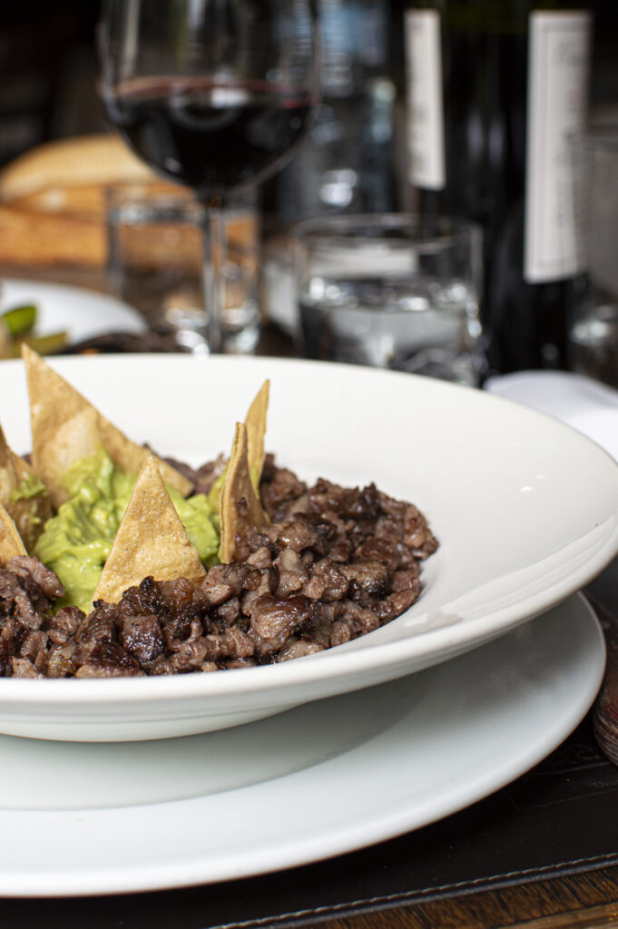Una experiencia por Quebracho inicia por un jugo de carne y algún carpaccio, pasando por la empanada de carne, una provoleta y coronando con un corte esencial como la Tapa de Bife. Como postre el alfajor, preparado completamente en casa.