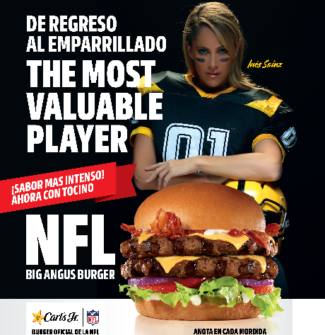 Anota en cada mordida con la NFL Big Angus Burger y disfruta del fútbol americano profesional, uno de los deportes que más pasión generan en México. Esta temporada Carls Jr. armó un equipo invencible con Inés Sainz al mando.
