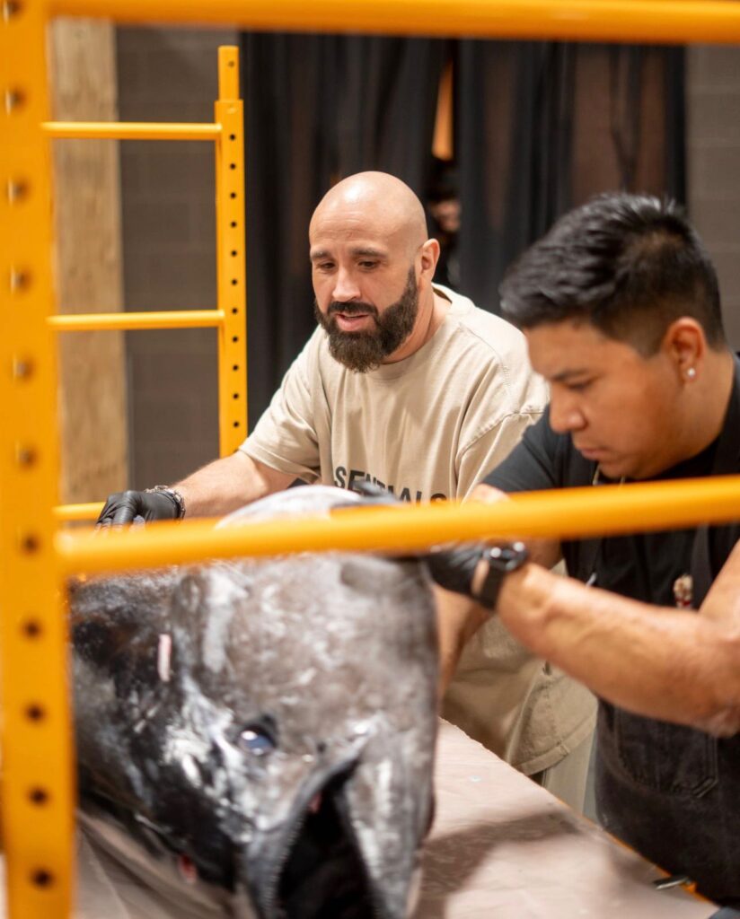 El ronqueo, arte ancestral que consiste en cortar un atún con maestría, será el eje de la velada. Su nombre proviene del característico sonido ronco que produce el cuchillo al deslizarse por el espinazo del pez. Este ritual gastronómico no es solo técnico, sino ceremonial; un homenaje al mar, a la tradición y al respeto por los ingredientes.