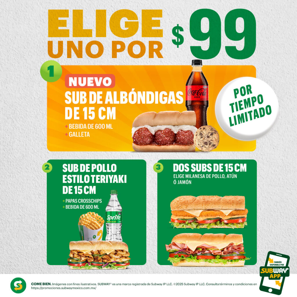 1 2 3 Consulta términos y condiciones en promociones.subwaymexico.com.mx.