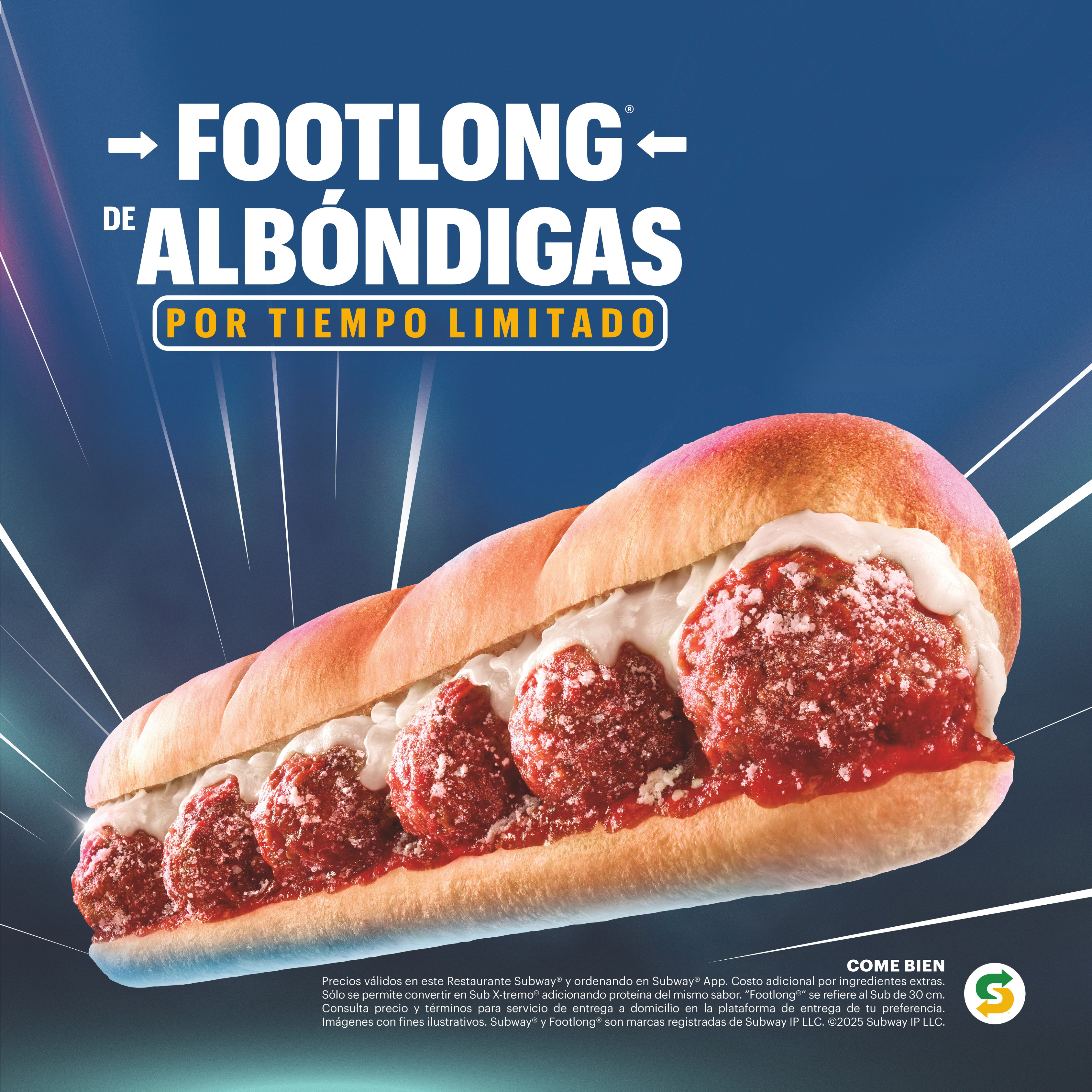 · Está disponible por tiempo limitado, en presentaciones de 15 cm, Footlong®, Combo,