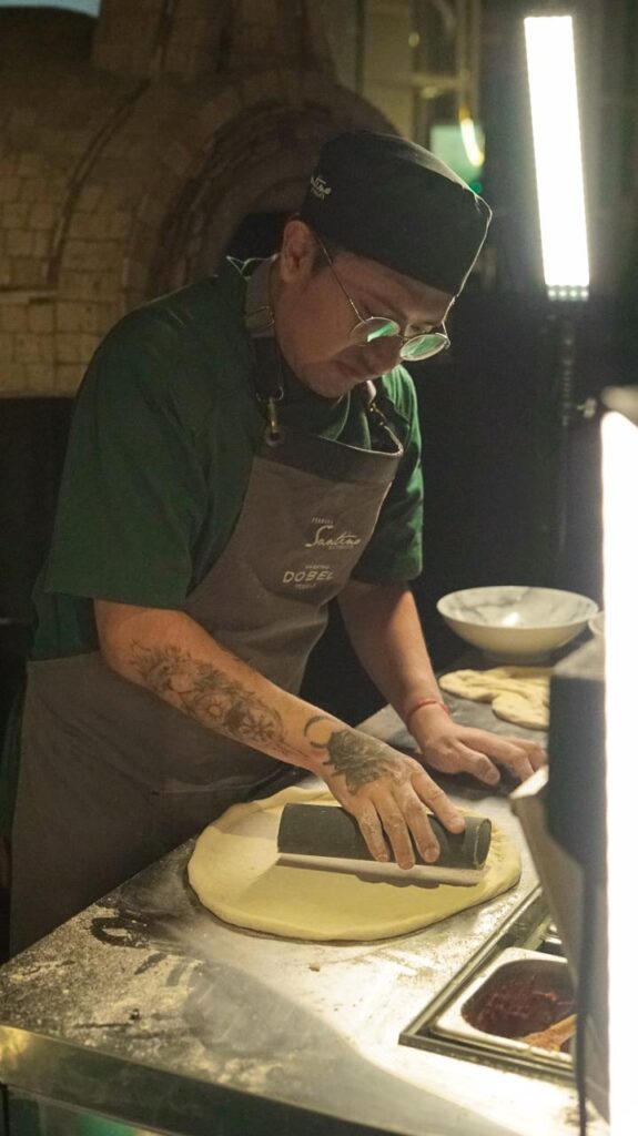 - Primer tiempo: Pizza napolitana elaborada con masa madre, burrata y prosciutto