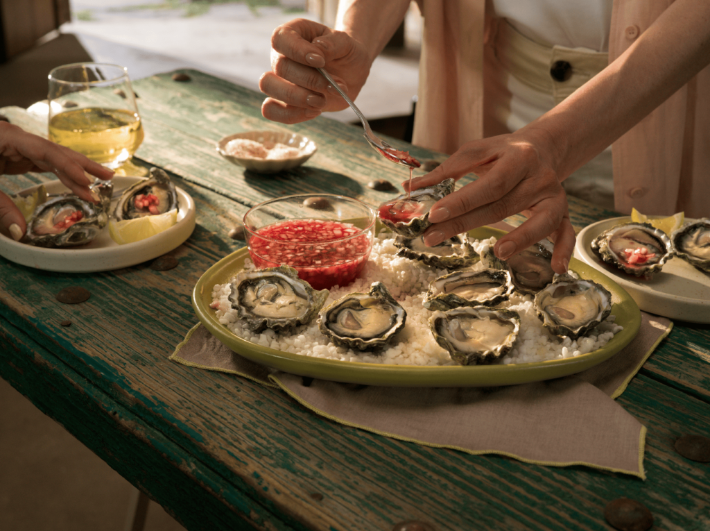 Su historia conecta tradición e innovación, combinando el conocimiento ostrícola heredado de la familia Danigo de Bretaña, Francia, con el entorno del Pacífico mexicano para desarrollarse bajo un modelo de acuacultura responsable. Hoy, su cultivo se lleva a cabo en la Laguna de San Ignacio, dentro de la Reserva de la Biósfera “El Vizcaíno” (Baja California Sur), y en Bahía Falsa, en San Quintín (Baja California), ecosistemas de aguas frías, limpias y ricas en minerales. Es precisamente este entorno el que define el carácter del ostión, a través del fenómeno conocido como merroir, por el cual las condiciones del mar influyen en su sabor y textura, resultando en un producto con un sabor equilibrado, con notas salinas y minerales, firme, fresco y jugoso, diferente a cualquier otro.