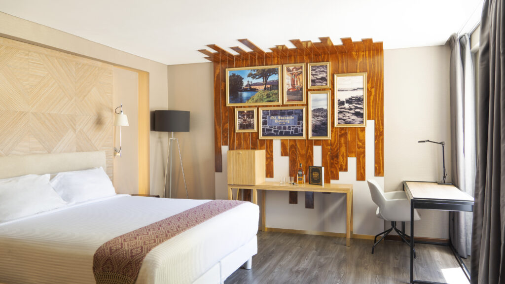 La alianza; además de fortalecer pilares fundamentales de ambas marcas en torno a la gastronomía y la cultura, permite a las personas que deseen hospedarse en el hotel NH Collection Mexico City Centro Histórico disfrutar de habitaciones exclusivas desarrolladas e inspiradas en Mundo Cuervo y algunas de sus bebidas emblemáticas (Maestro Dobel, Bushmills y Creyente).