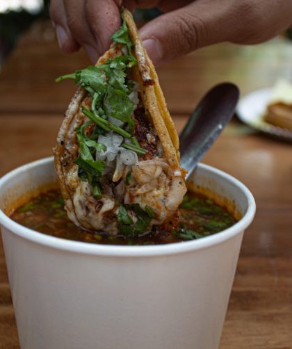 Taquería callejera con birria de res estilo Tijuana en taco, quesabirria, torta ahogada o en consomé. Sobre la calle de Río Lerma, en la Colonia …