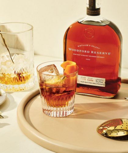 Old Fashioned Ingredientes: 2 oz.de Woodford Reserve 1/2 oz. de jarabe de Demerara 3 cucharadas de amargo de Angostura 2 cucharadas de naranja de Regan …